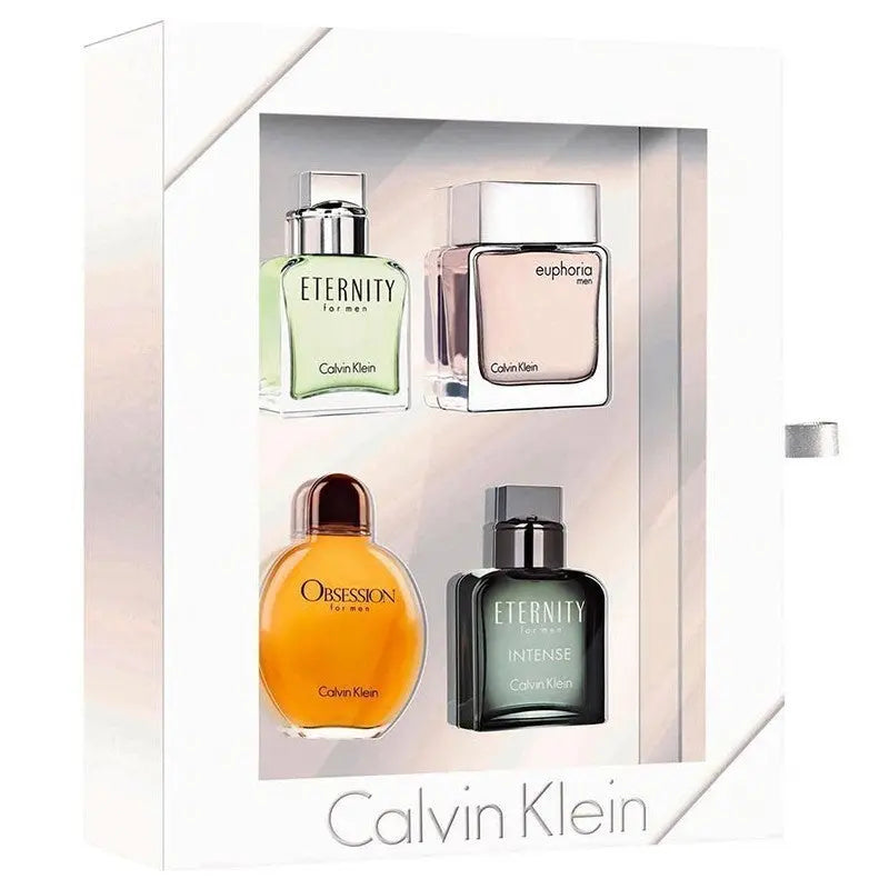 Design house: Calvin Klein. Gender: Mens. Category: Beauty and Personal Care. Type: Sets. Style: M4CAL3-A. Barcode: 3614224107703. Eternity Men EDT Splash 0.5 oz, Euphoria For Men EDT Splash 0.5 oz, Obsession Men EDT Splash 0.5 oz, In Display Box. Mini Set / Calvin Klein 4 Pc. Set (m).